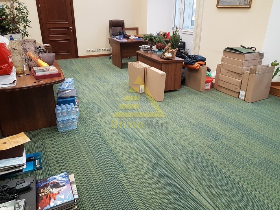 Укладка ковровой плитки Desso Essence Stripe на изношенный паркет, в здании министерства.
