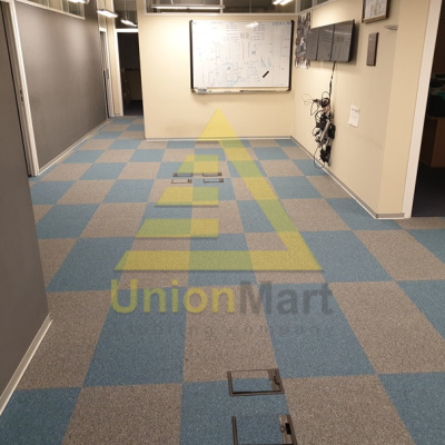 Сложный демонтаж старого покрытия и очистка поверхности основания, укладка ковровой плитки в действующем офисе.