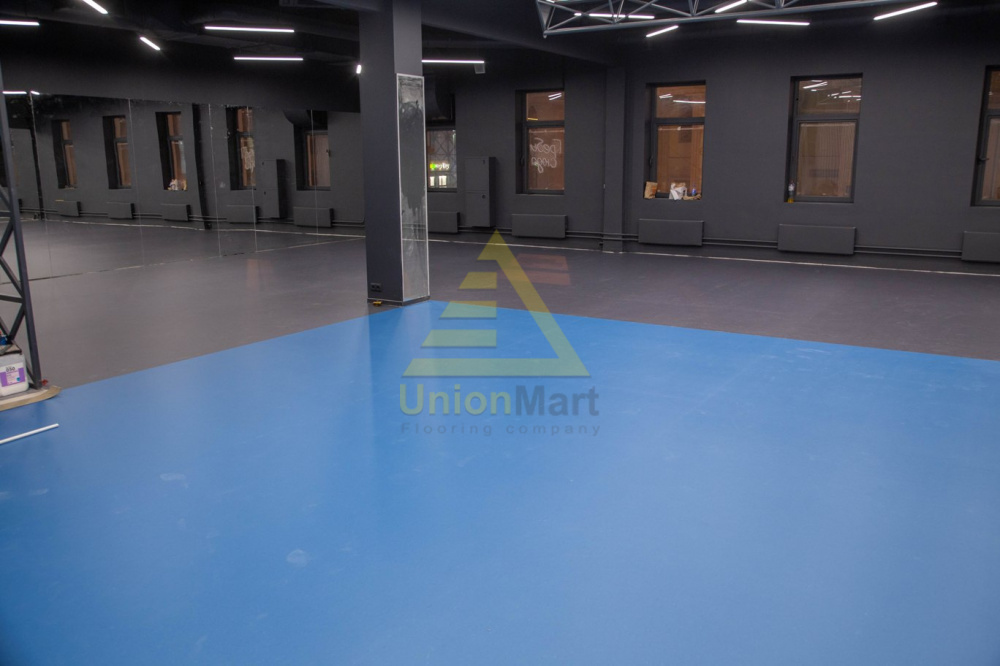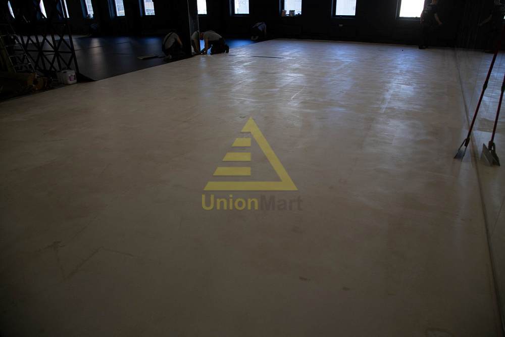Укладка натурального линолеума с предварительной заливкой поверхности основания нивелирующей смесью