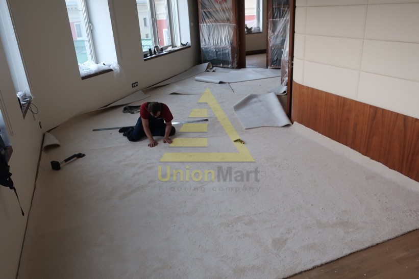 Укладка коврового покрытия с предварительным ремонтом поверхности основания
