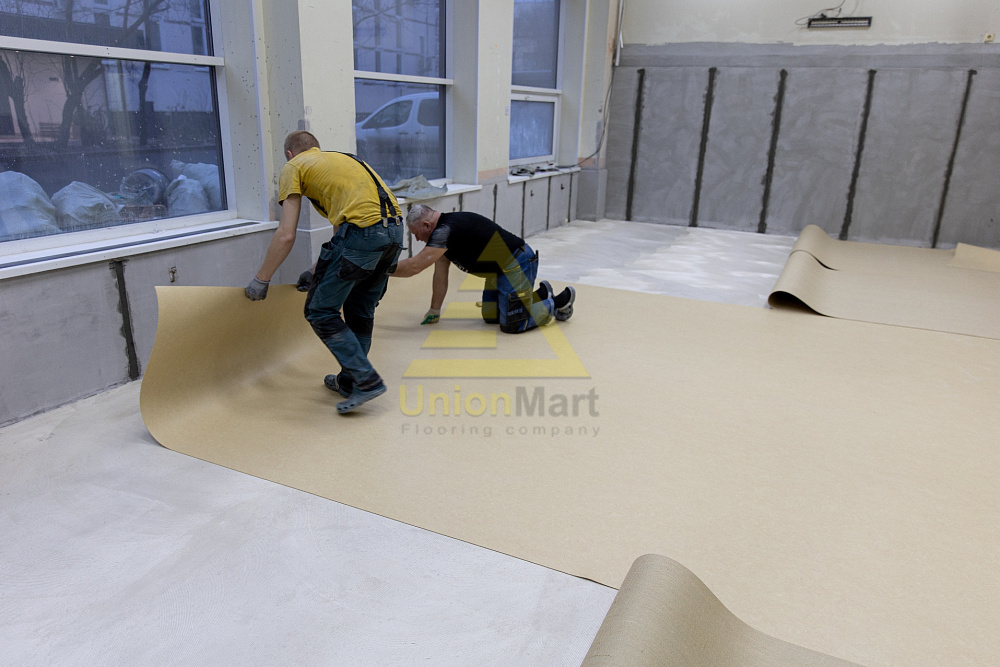 Laying natural linoleum