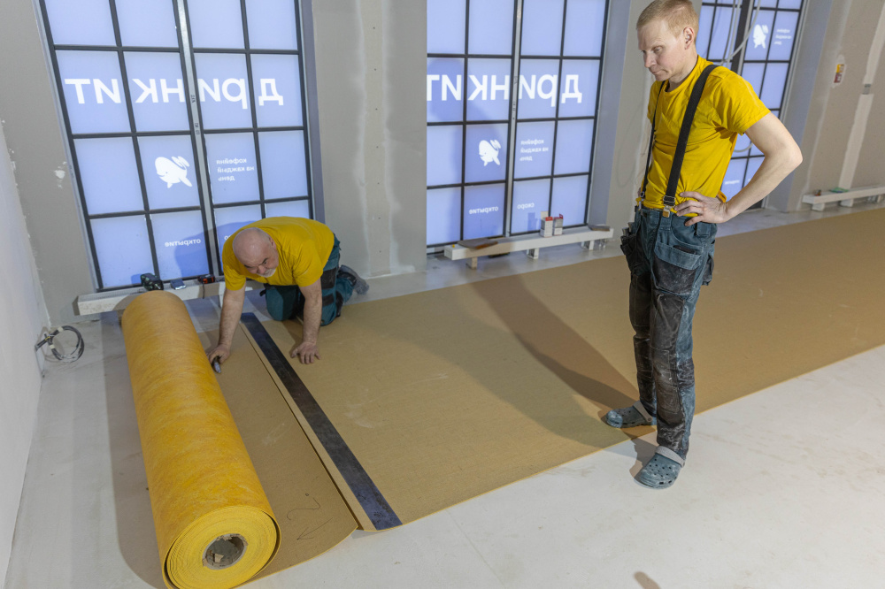 Laying natural linoleum in one color