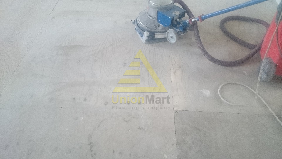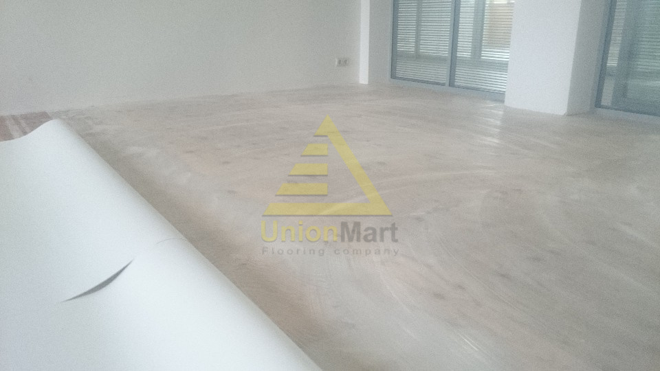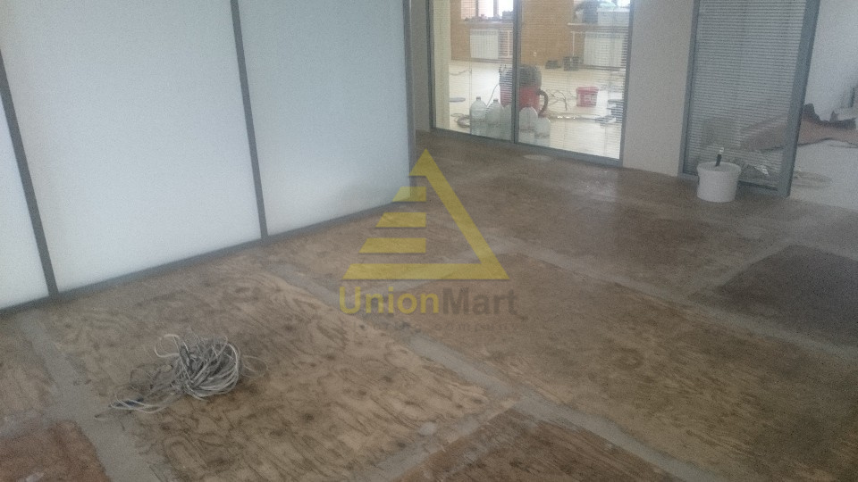 Предварительная шпатлевка фанеры и шлифовка, выравнивание стыков фанеры. Укладка ковровой плитки Desso, укладка линолеума Forbo с проваркой швов.