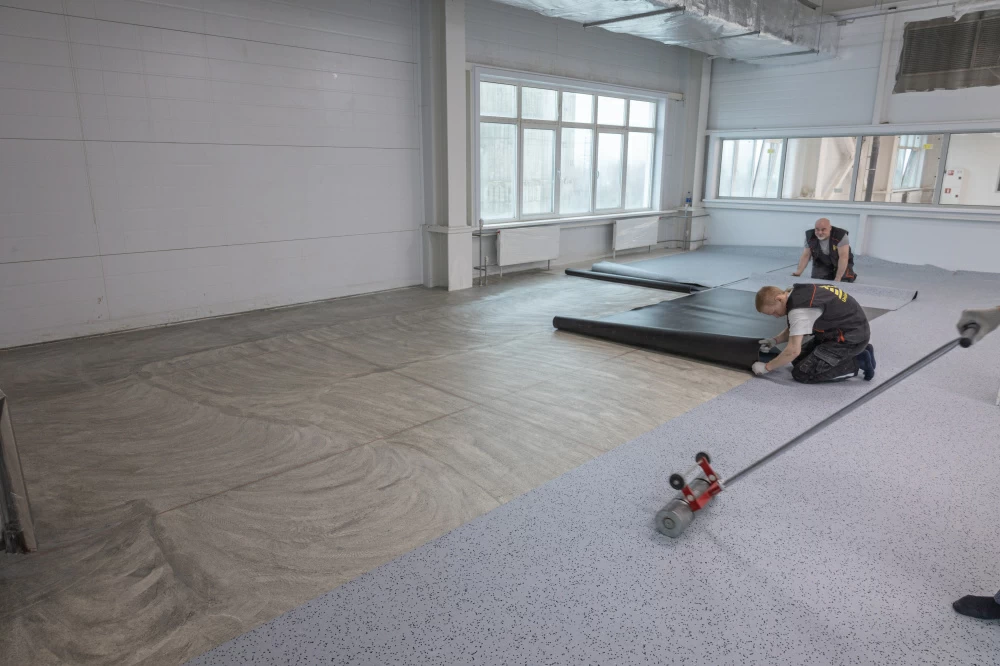 Укладка антистатического линолеума на медную ленту, на подготовленное основание заказчиком, с гарантией один год. Поверхность основания должна соответствовать базовым требованиям:
